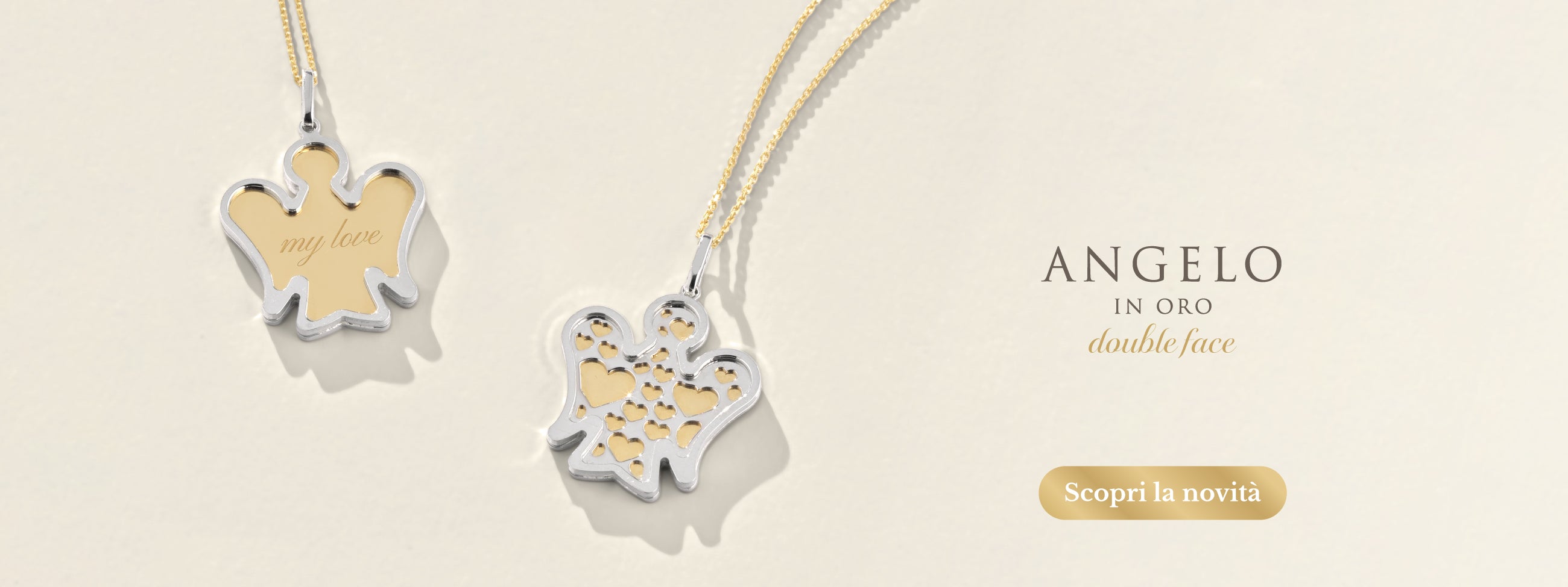 L’ Angelo è il nostro simbolo: talvolta protagonista, talvolta discreto, ma sempre presente come segno distintivo di autenticità, protezione e qualità. Ogni gioiello nasce per custodire un messaggio prezioso, da donare, indossare e tramandare nel tempo.