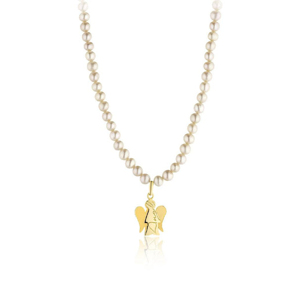 Collana in Oro con Angelo e Ali in contrasto con cuori