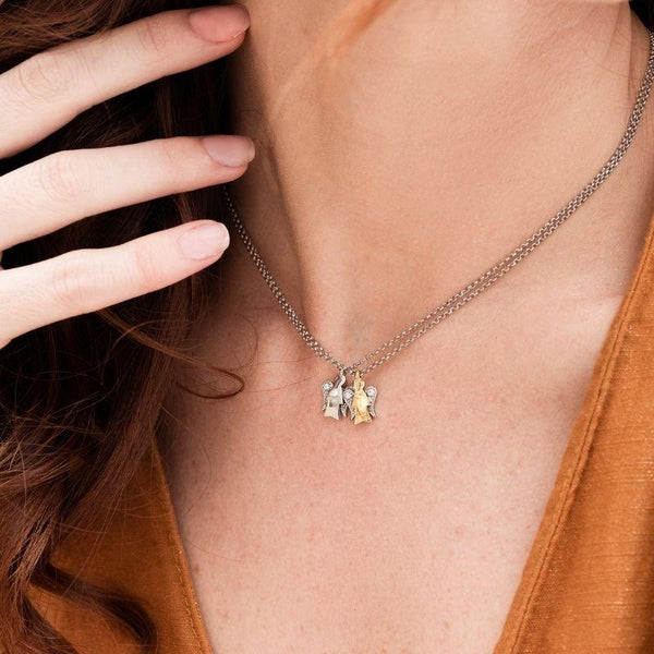 Collana Con Pendente Angelo con Stelle Double Face In Oro Bianco E Giallo